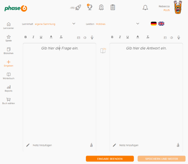 Du kannst mit jedem Paket Vokabeln eingeben oder mit fertigen Vokabelsammlungen lernen.